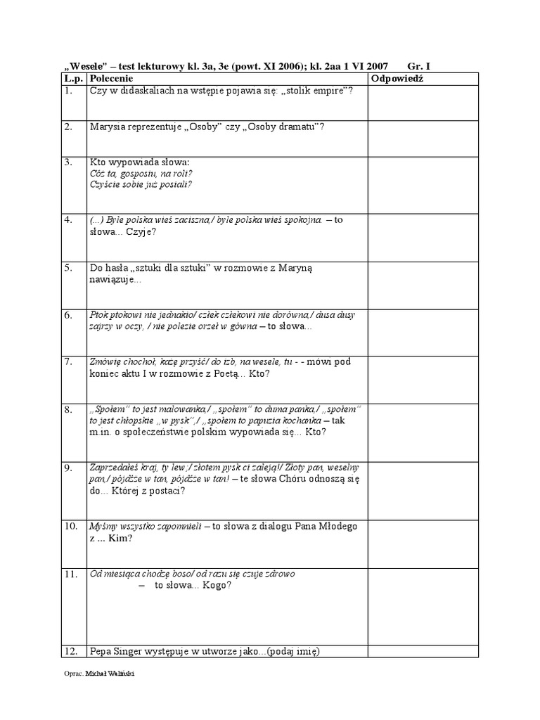 Wesele Sprawdzian Pobierz Pdf Z Docer Pl